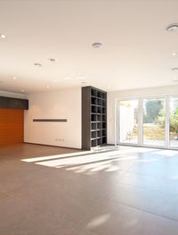 Die großformatigen Feinsteinzeugböden verleihen dem Ensemble zusätzliche Wärme und Ruhe. Natürliche Textur, zurückhaltende Fugenlinien und eine robuste Oberfläche bilden die Basis für einen Raum, der repräsentativ und zugleich alltagstauglich bleibt. Die kontrollierte Wohnraumbelüftung sorgt stets für angenehmes Klima. Präzise Einbauten, flächenbündige Übergänge und klare Linien formen ein durchdachtes Raumensemble – offen und zugleich geborgen.